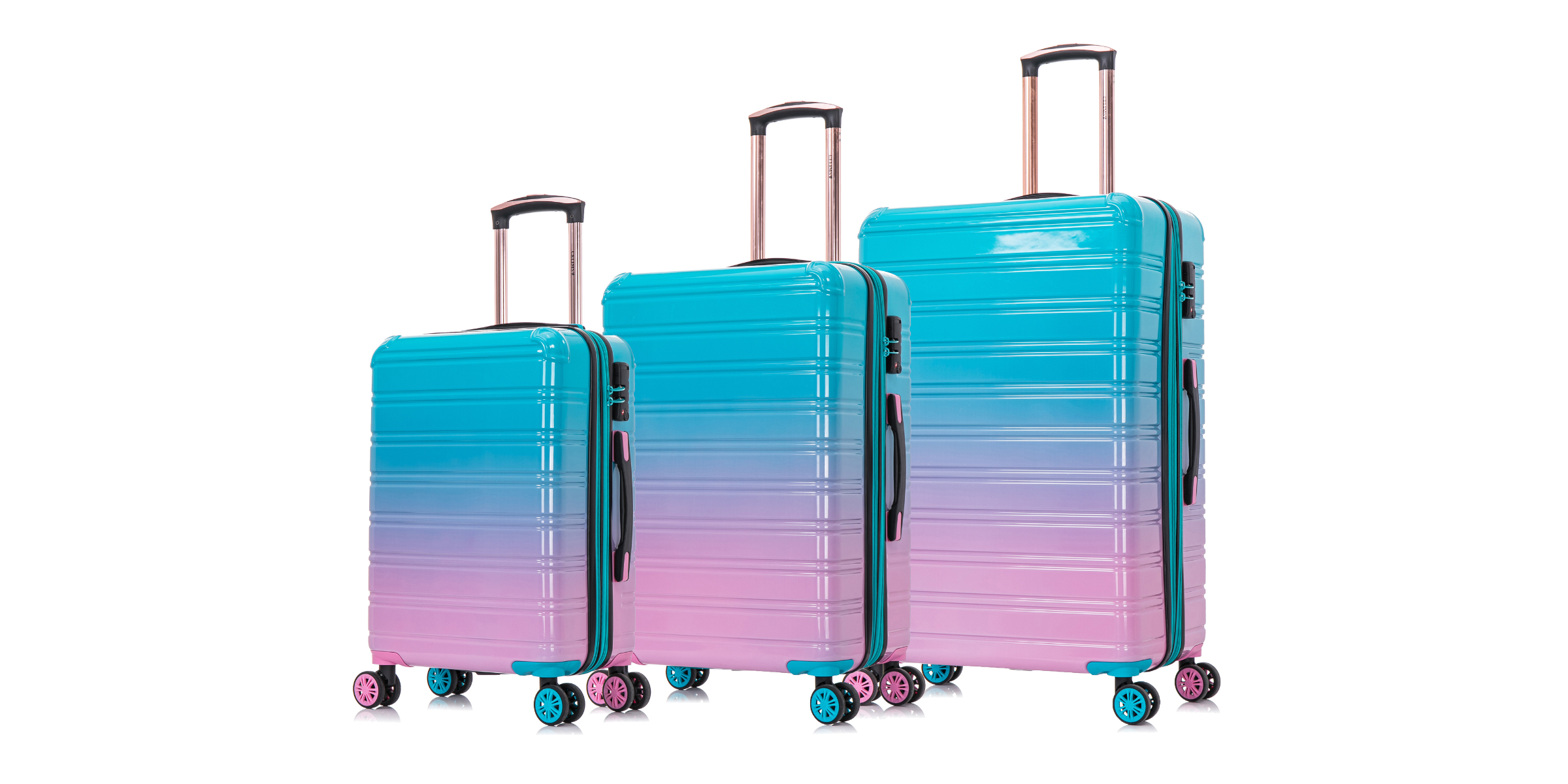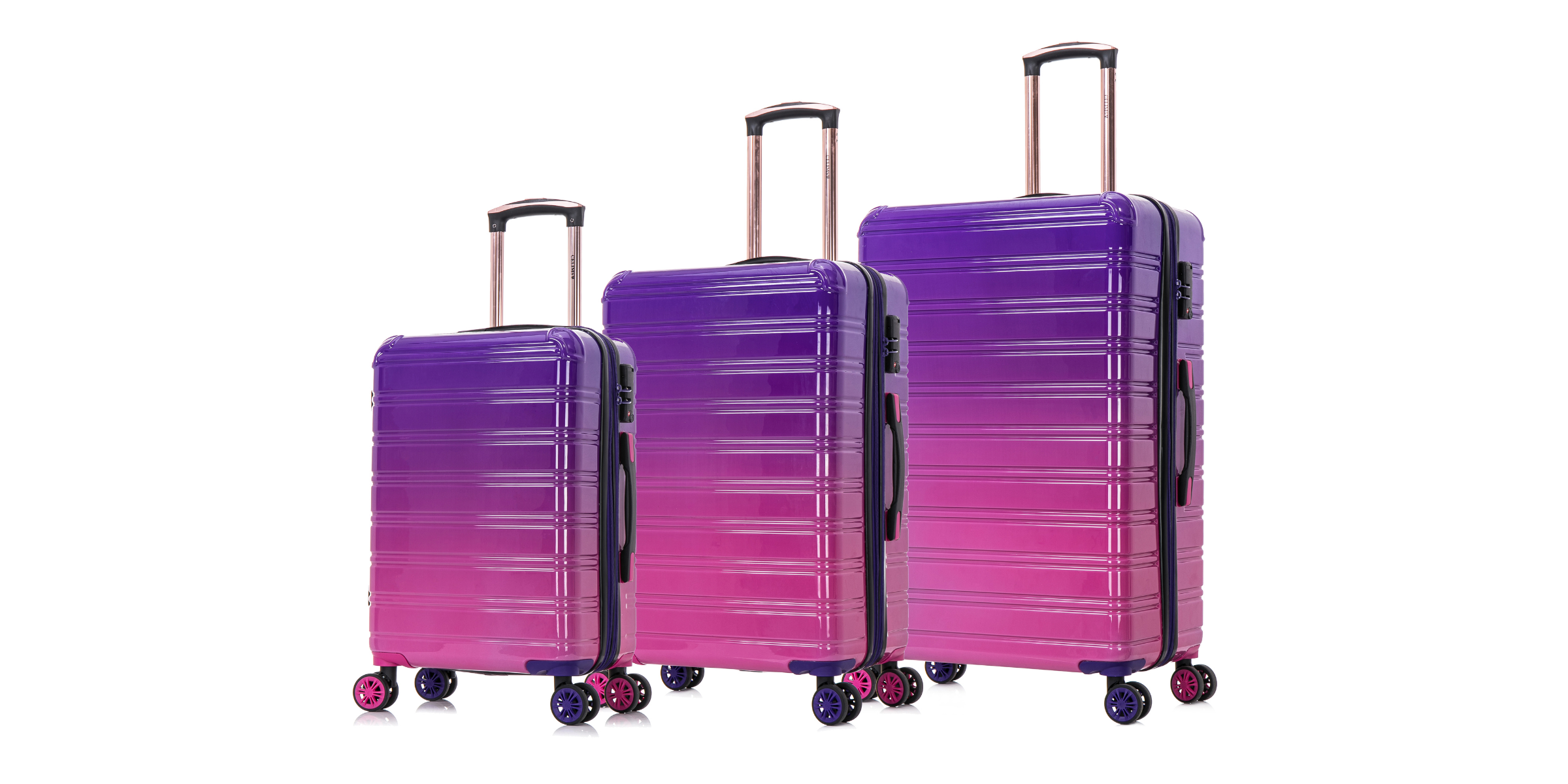 With its refined style , the CELIMS Medium Suitcase in polycarbonate combines aesthetics and robustness . Available in two exclusive finishes: Purple Gradient and Turquoise Gradient , it stands out with its unique and sophisticated look.