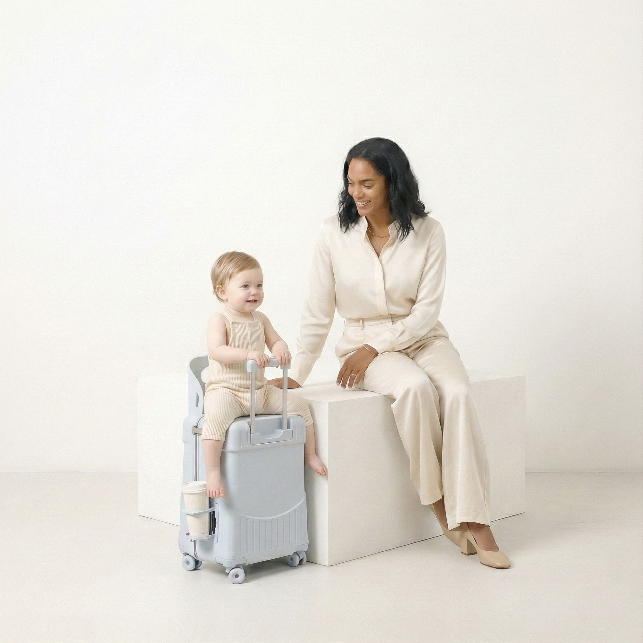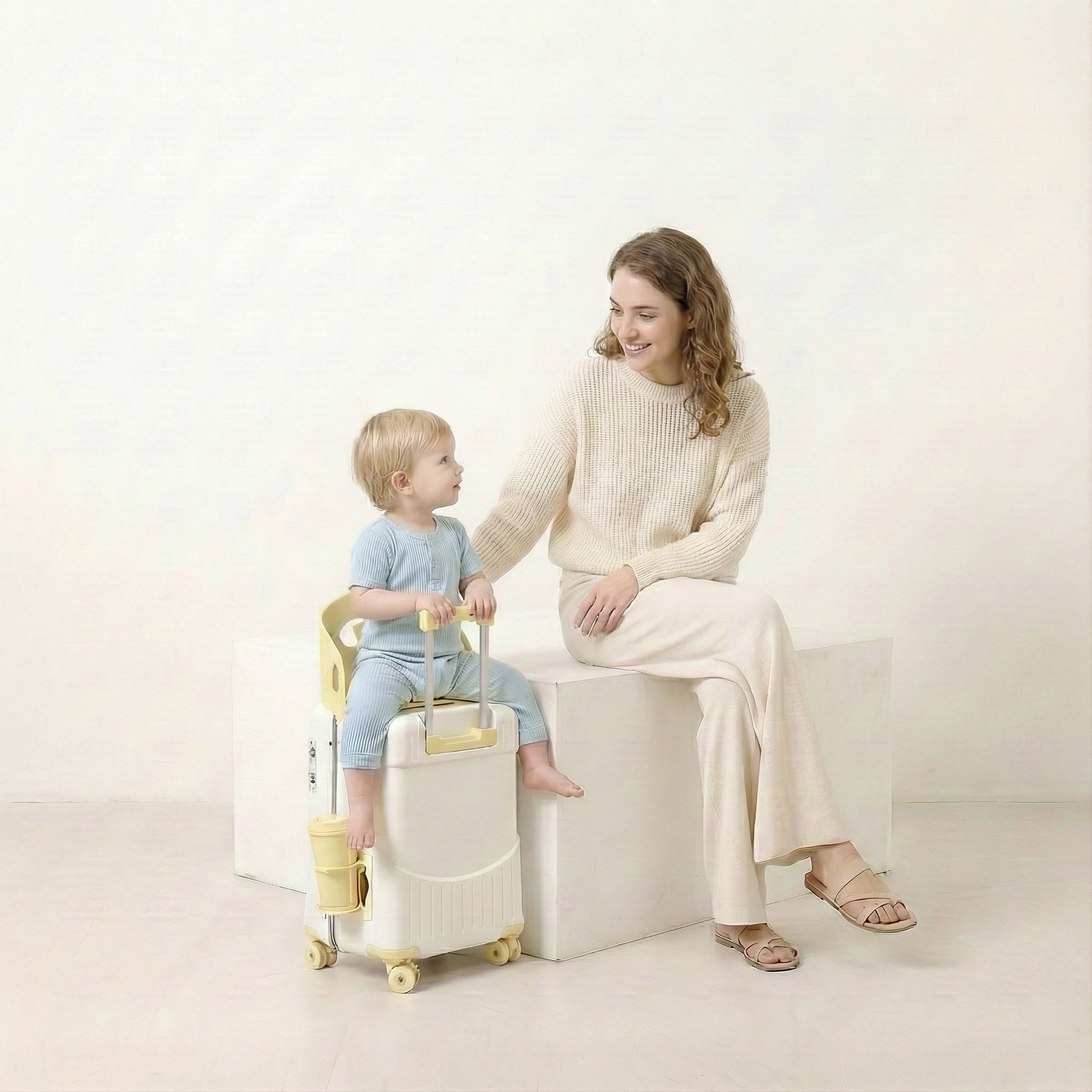 Valise Cabine avec Siège Enfant PopSeat - 55x35x25 - Porte USB - roulettes Ultra Résistantes avec Frein - Porte Gobelet - Cadenas