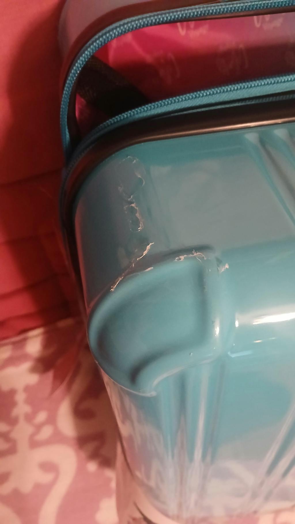 très belle valise, intérieur très beau. Mais par contre l'extérieur est mal défini la protection transparente "se pelle". J'ai peur hélas qu'au bout d'un voyage en avion cela devient plus catastrophique...